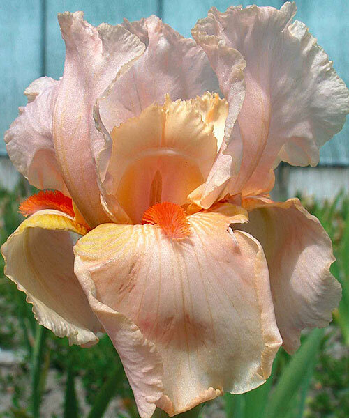 - листва сохраняет свой сочный цвет на протяжении всего лета. Семена этого сорта тяжело прорастают, поэтому растение рекомендуется размножать вегетативно. Бутоны имеют персиково-розовый оттенок с мандариновой бородкой. Лепестки немного волнистые, придают цветку особое изящество. Прекрасно смотрится в сочетании с боле темными оттенками цветков на групповых клумбах и в подарочных букетах.