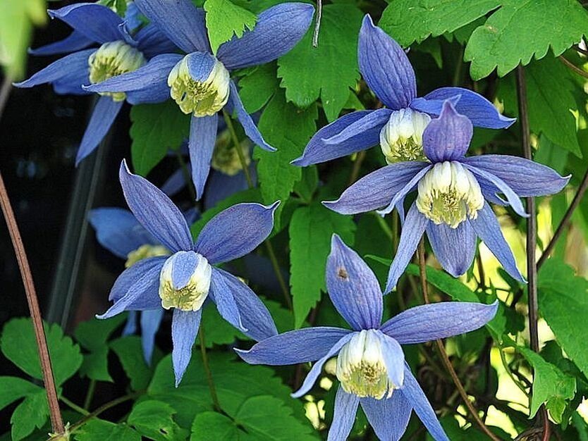 Саженцы Клематиса гибридного Frances Rivis (Clematis) малотребовательное, хорошо устойчиво к вредителям растение. Любит солнечный свет, но хорошо растет и в полутени. Вырастает до 3 метров в длину и нуждается в дополнительной опоре, если выращивается как вертикально растение. Без опоры развивается в качестве почвопокровного растения. Сорт клематиса Франц Ривз зацветает в апреле маленькими, фиолетово-голубыми цветками с белой сердцевиной. Цветение продолжается до конца мая. Широкое применение данный сорт нашел в создании декораций садовых построек и ширм. Также можно использовать в одиночной или смешанной посадке.