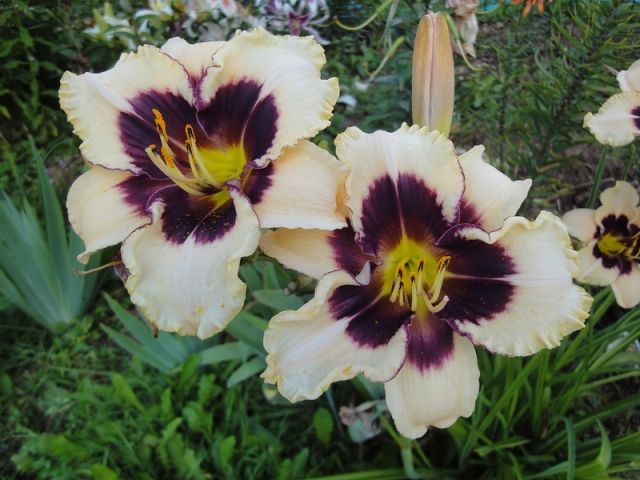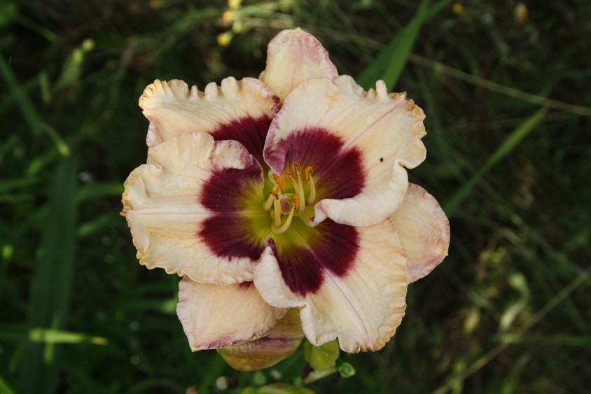 Окраска цветка : кремовая с лиловым центром и каймой
