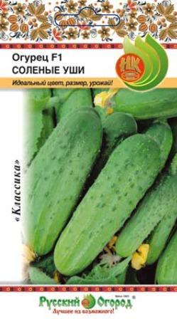 Семена огурцов "Соленые уши F1" высевают на рассаду в начале мая. Высадка всходов в грунт происходит в конце мая —  начале июня. Посев семян огурцов "Соленые уши F1" в открытый грунт осуществляют в конце мая—  начале июня. Срок созревания составляет 50-55 дней от появления всходов. Плоды крупнобугорчатые, с плотной кожицей. В длину достигают до 9-10 см. Вкусовые качества плодов отменные, горечь отсутствует. Используют урожай для потребления в свежем виде, а также засолки и консервации.
