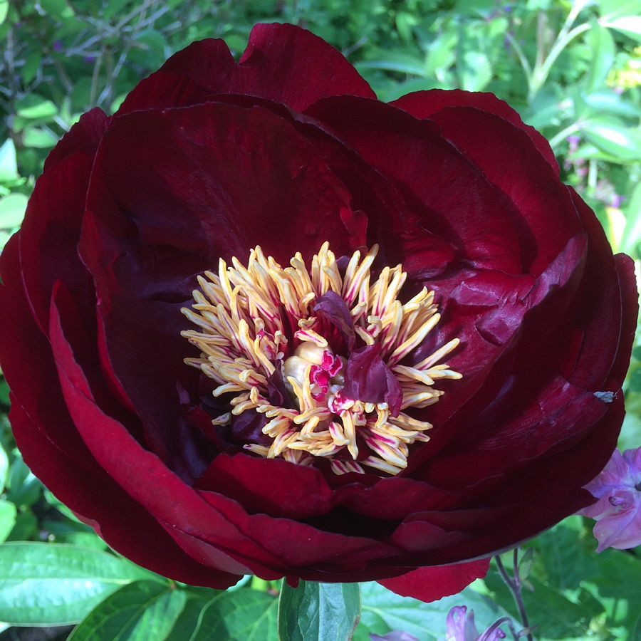 Саженцы пионов Бакай Белл (Buckeye Belle) относится к сорту межвидового гибрида. Куст компактный, высота которого может достигать 60-80 см. Стебли прочные, прямые, листья темно-зеленого цвета, с крупными тычинками. Цветки полумахровые розовидной формы, 5-6 рядные, темного красно-коричневого цвета с крупными желтыми тычинками. Могут достигать в диаметре 16 см. Запах слабый. Саженцы пионов Бакай Белл высаживают на хорошо удобренные солнечные или частично затененные участки. Полив необходим в засушливое время года.