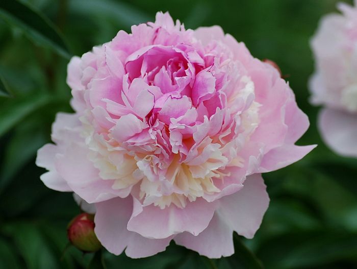 Рассада пиона молочноцветкового Эденс Парфюм (Eden's Perfume) отличается притягательным ароматом, что делает его прекрасным составляющим для летних букетов. Оттенок у цветков нежный жемчужно-розовый с редкими вкраплениями оттенков фуксии или крем-брюле. Бутон очень пышный: с двумя рядами нижних лепестков, которые окружают очаровательный шарик из узких гофрированных лепесточков.