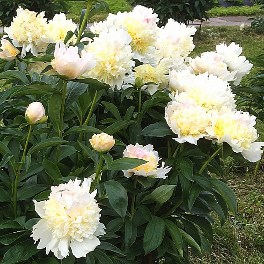 Рассада пиона молочноцветкового Топ Брасс (Top Brass): особенность цветов – в сочетании прямых и махровых лепестков и плавном переливе цвета от кремового к розовому. Цветки получаются трехслойными, округлые по краям и махровые в центре. Необычайно эффектны в одиночных и групповых посадках и в срезке. При посадке в плодородную почву пионы прекрасно растут без дополнительного ухода десятки лет. Сорт может завязывать семена, но в основном размножается делением куста и черенками. Особенности посадки пиона Топ Брасс: