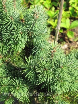 Саженцы Псевдотсуги Мензиса Канина (Kanina) – сорт, который люди ценят за медленный рост, высота за много лет не превысит трёх метров. Всходы у этого растения жесткие, можно сказать жесткие. Кроной Мензиса Канина устремляется вверх, а нижние ветви растут горизонтально. Зелёные хвойные игры с голубыми полосками плотно облепляют побеги, но они совсем не колючие. Дерево отлично растёт в морозном климате, спокойно переносит мину 29 градусов. Хорошо сказывается на декоративности повышенная влажность. Лучше всего будет смотреть на клумбах и газонах, ведь растение любит солнышко, а тень от других деревьев может ему не понраиться.
