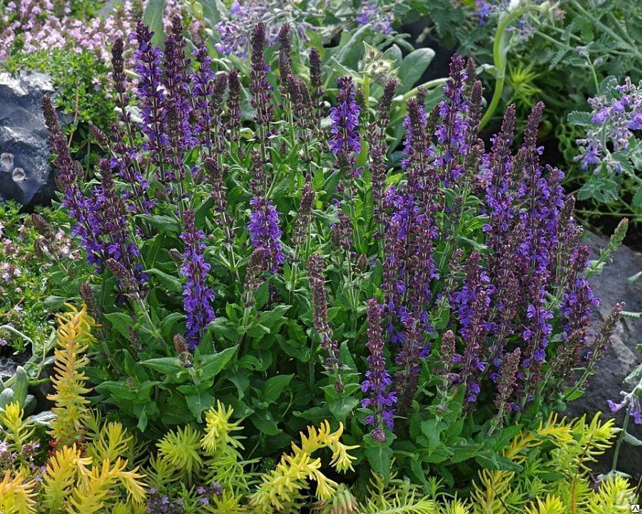 Шалфей пышный Adora Blue - это великолепное растение с изысканным сине-фиолетовым цветком, которое поражает своей красотой и изяществом. Его ярко-зеленые листья идеально дополняют окраску цветков, создавая неповторимый образ в вашем саду. Высота этого растения может достигать до 60 см, что делает его идеальным выбором для групповых посадок.