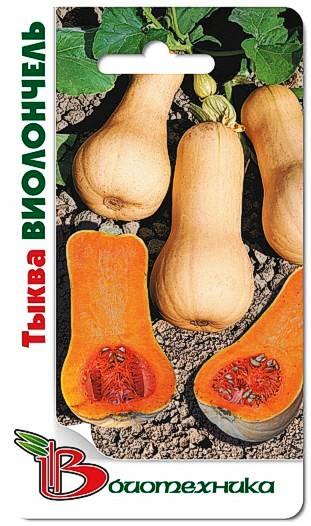 Семена тыквы "Виолончель" (Violonchel) высевают на рассаду в апреле. Пересадку на постоянное место проводят в мае – июне. Семена можно сразу высевать в открытую почву в середине мая. Созревание розовато-бежевых плодов происходит через 110 дней после появления первых всходов. Тыква имеет интересную форму, которая похожа на виолончель. Мякоть плодов насыщенно-оранжевого цвета, плотной консистенции, маслянистая. Обладает ярким фруктовым ароматом. Средняя масса плода может достигать 6-8 кг. Собранный урожай может долгое время храниться без потери товарных качеств.